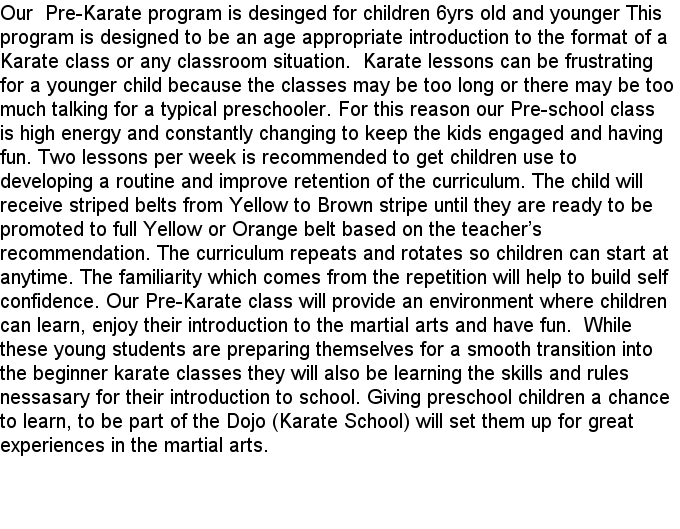 Satori Ryu Karate Pre-School Classes ages 4-6
