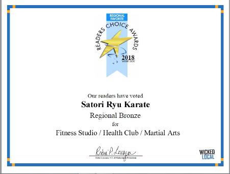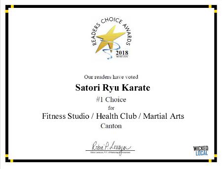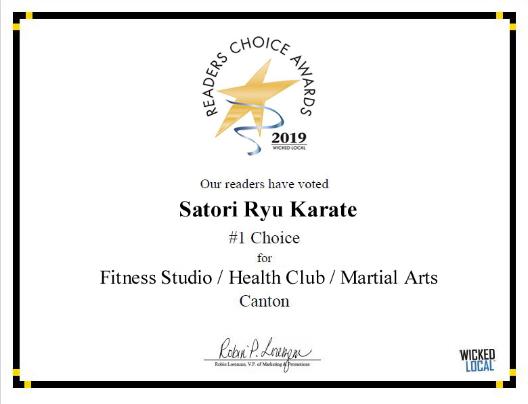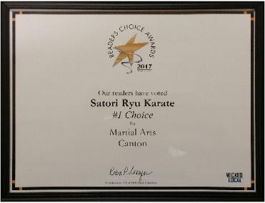| SATORI RYU KARATE IS PROUD TO BE THE WINNER OF THE READERS CHOICE AWARD FOR BEST MARTIAL ARTS SCHOOL IN CANTON FOR THREE CONSECUTIVE YEARS 2017, 2018, 2019 & WINNER OF THE READERS CHOICE REGIONAL FAVORITE GOLD AWARD 2017 AND BRONZE FOR 2018 FOR BEST MARTIAL ARTS SCHOOL / FITNESS CENTER IN THE REGION ! |